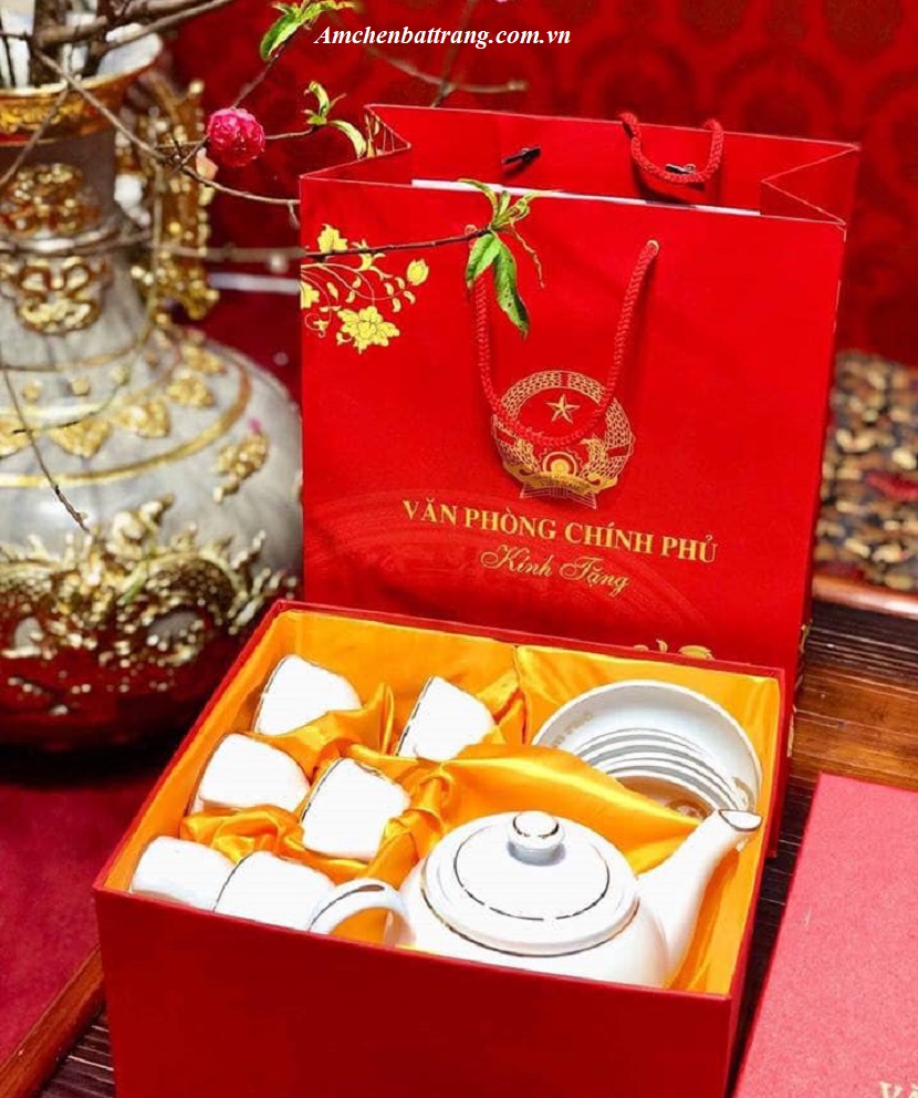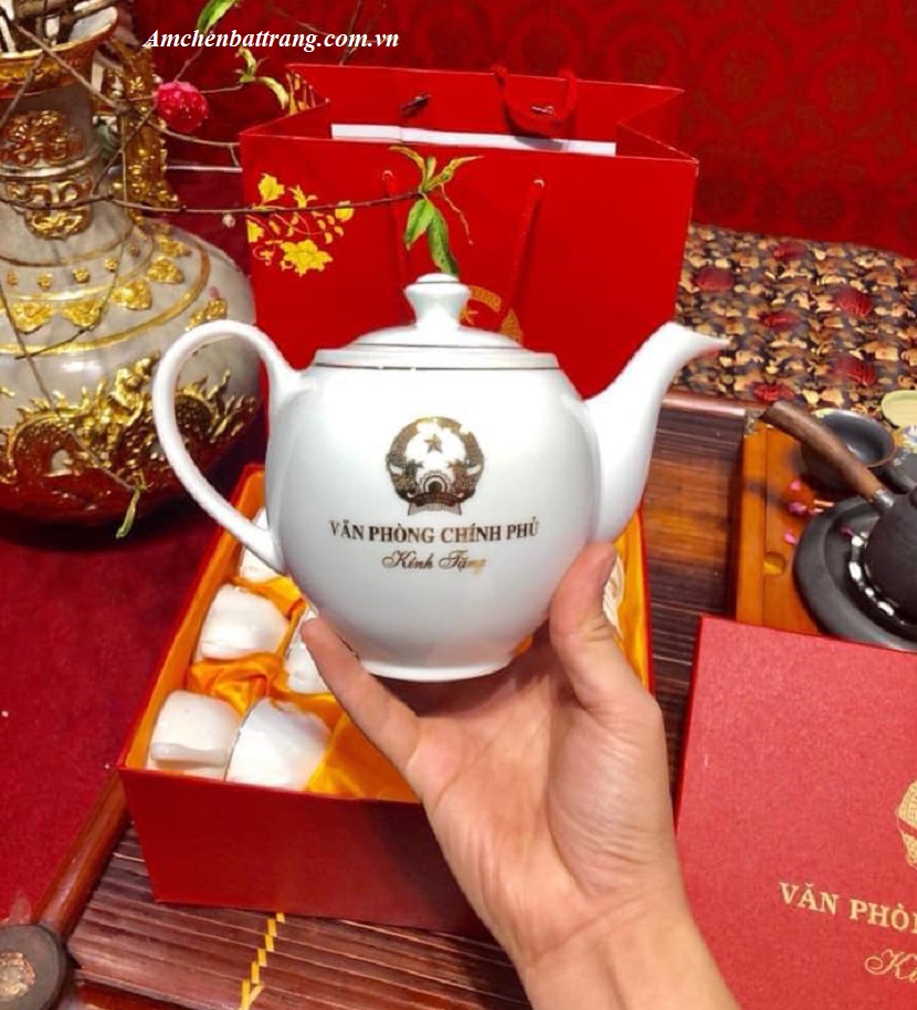 Ấm chén in logo thành phẩm - Gốm Đất Xanh
