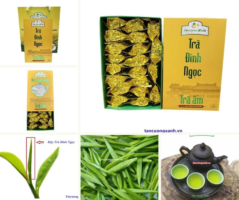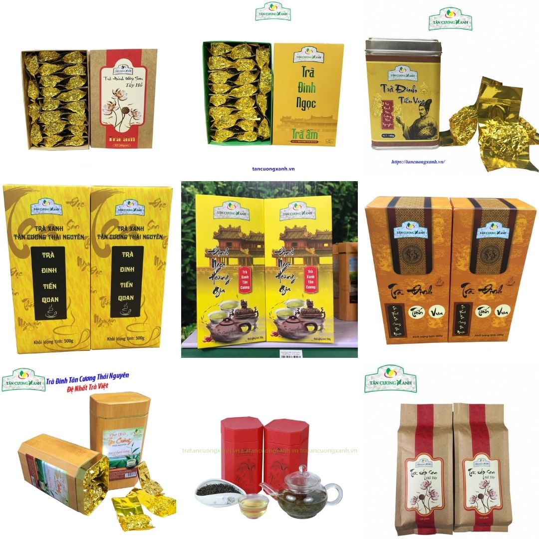 - Sản phẩm trà đinh thái nguyên, được mệnh danh là đệ nhất trà Việt. Nguyên liệu được thu hái 100% búp từ lúc sáng sớm khi các búp trà còn đang ngậm sương và chưa hé, trông giống như chiếc đinh nhỏ nên được gọi là trà đinh thái nguyên