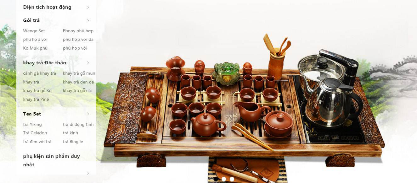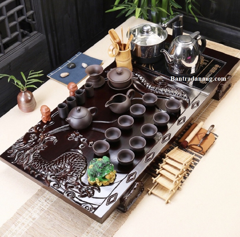 Bàn trà gỗ Đài Loan kết hợp siêu điện , ấm điện , ấm chén cao cấp và dụng cụ pha trà, nâng tầm phòng khách của quý khách nên tầm cao mới