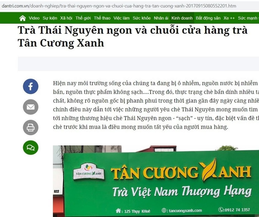 Báo chí nói về hệ thống chè thái nguyên ngon Tân Cương Xanh