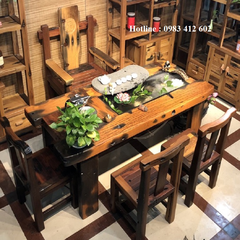 Gồm 1 bàn và 4 ghế . Sản phẩm đi kèm bộ bếp từ và ấm chén + vật phẩm phong thủy đi kèm