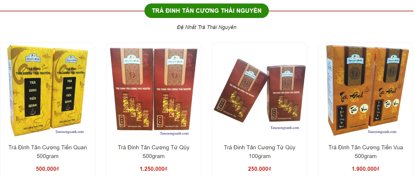 Trả lời : Tân Cương Xanh có nhiều sản phẩm như trà tân cương phúc lộc tài , trà tân cương đặc sản , trà tân cương ngũ sắc, hộp trà tân cương thượng hạng vân gỗ