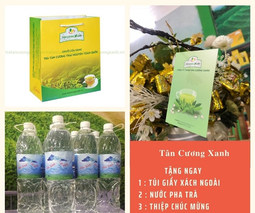 Với mỗi 1kg chè tân cương thái nguyên thượng hạng công ty chúng tôi sẽ tặng 1 túi giấy xách ngoài, một chai nước pha trà và 1 thiệp chúc mừng