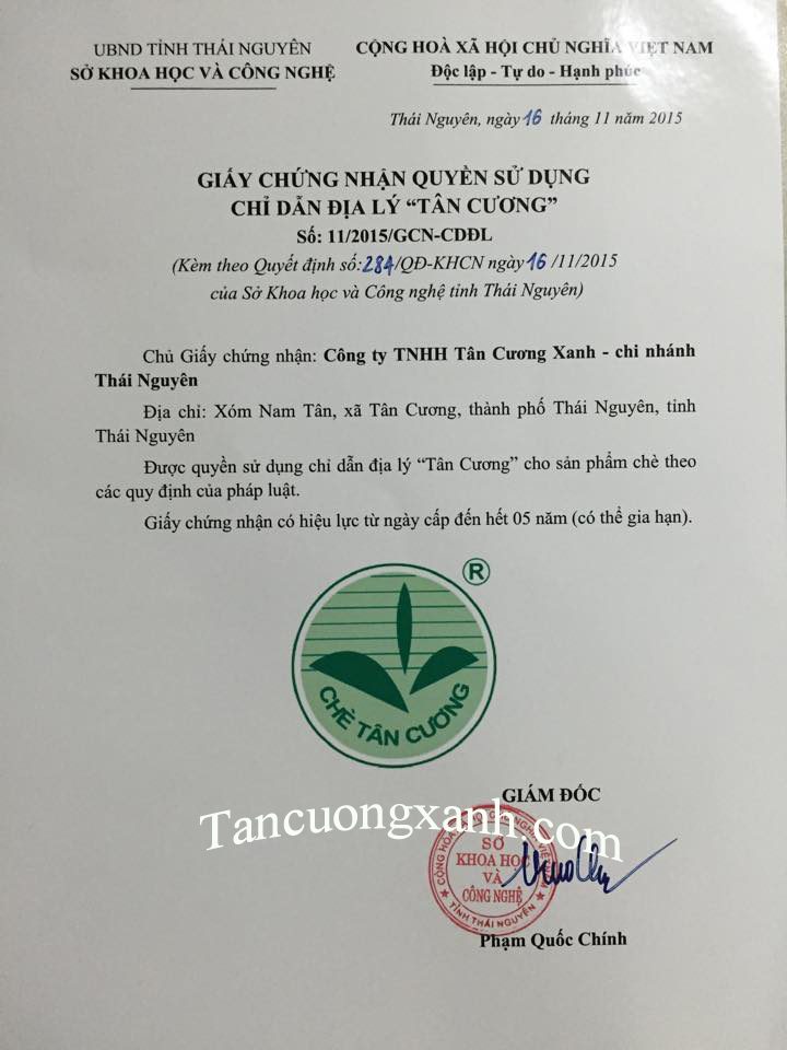 Logo chỉ dẫn địa lý chè tân cương thái nguyên - Sở Công Nghệ Thái Nguyên quản lý