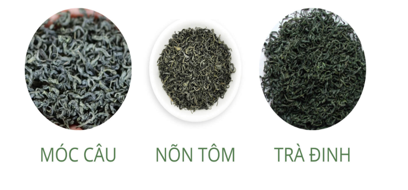 Trà móc câu trải qua quá trình vò đặc biệt để tạo hình cong. Trà Đinh được sao nhẹ nhằm giữ nguyên hình dáng búp thẳng.