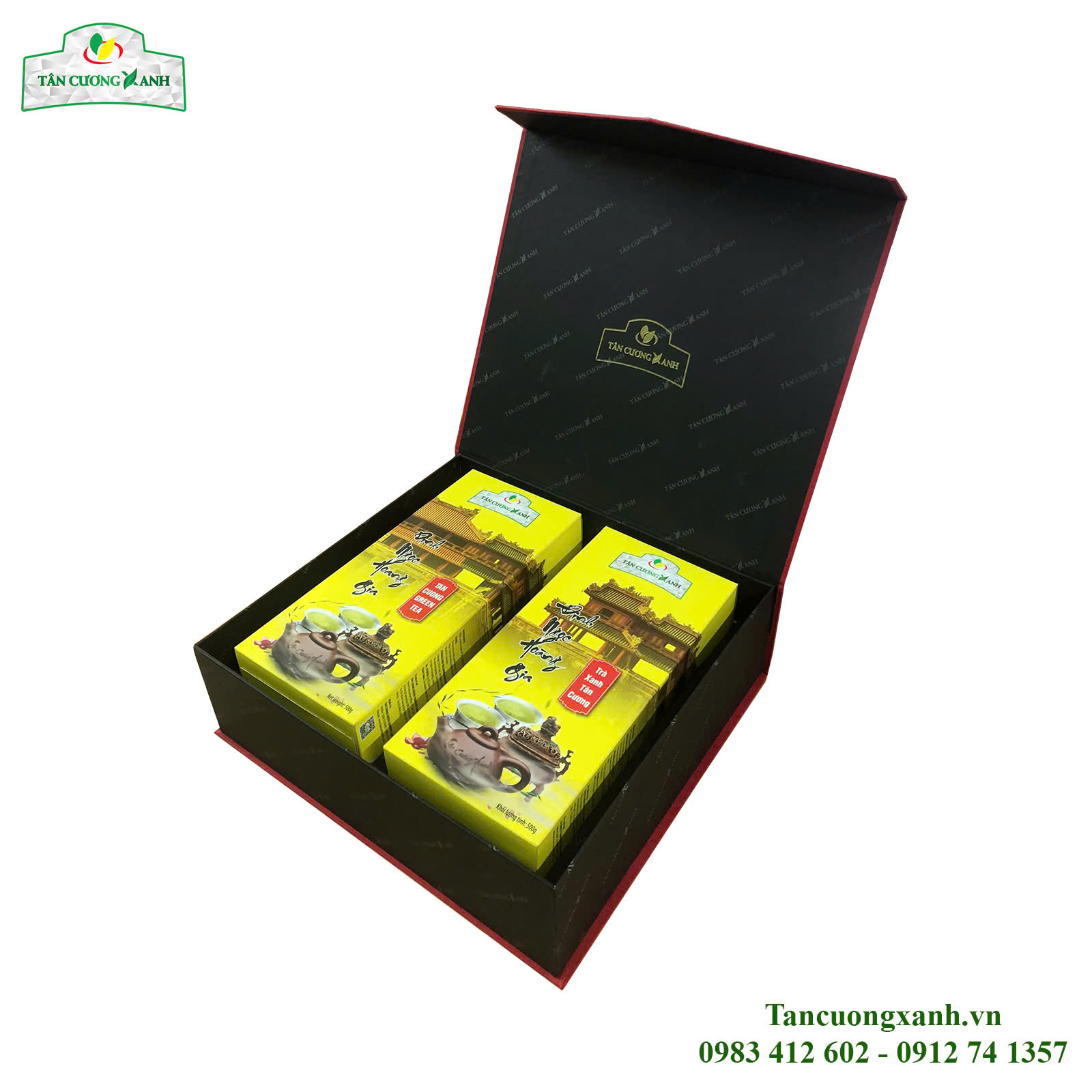Khối lượng tịnh trà : 1kg, gồm 2 hộp nhỏ, mỗi hộp 500gram