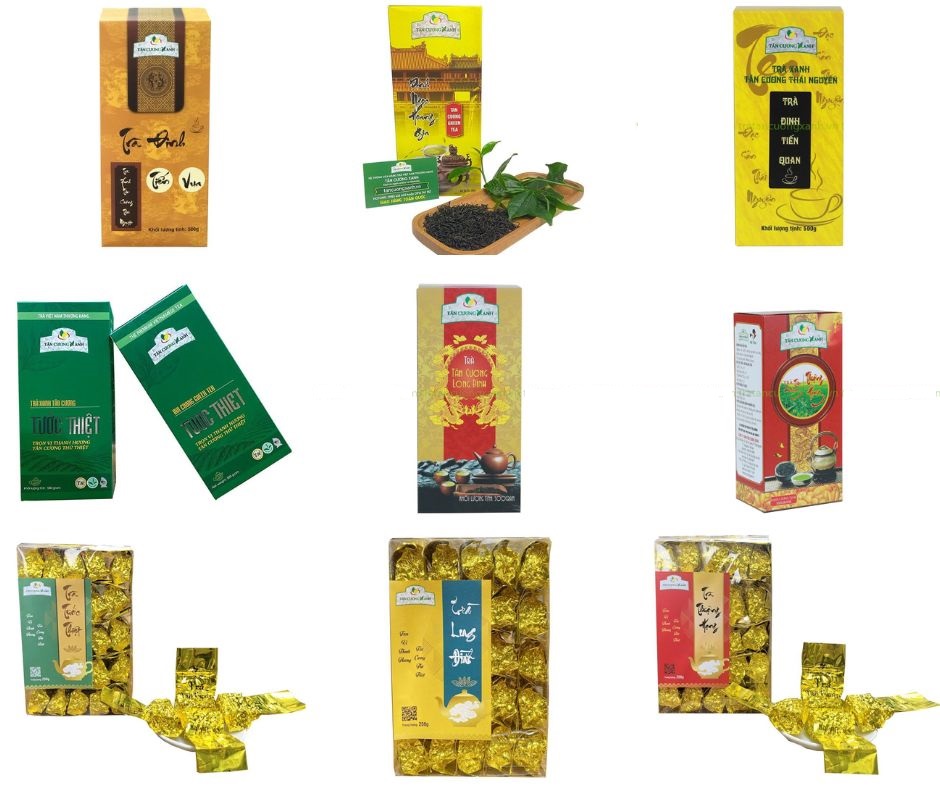 Các sản phẩm quà tặng trà thái nguyên Tân Cương Xanh vừa mang đậm truyền thống cùng sự hiện đại, sang trọng như trà đinh Tiến vua, trà đinh ngọc Hoàng gia, hộp trà thái nguyên gỗ thông, hộp trà tân cương Hứng dừa…. Hộp quà tặng trà thái nguyên Tân Cương Xanh được đội ngũ sản xuất nghiên cứu để cung cấp cho khách hàng những hộp trà quà tặng ý nghĩa, hộp quà tặng trà sẽ trở thành lời tri ân, trao tặng tình cảm. Sản phẩm trà thái nguyên của Tân Cương Xanh từ vùng “đệ nhất danh trà” với chất lượng và hương vị đặc biệt đã chinh phục được những khách hàng khó tính nhất.