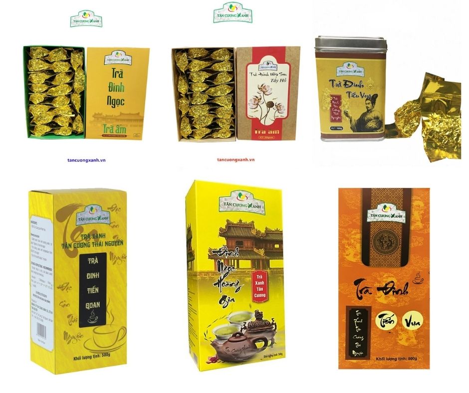 Tân Cương Xanh có rất nhiều các hộp trà thái nguyên quà biếu như hộp trà tân cương hứng dừa, hộp trà tân cương long phượng, hộp trà tân cương tứ long, hộp trà tân cương long việt. Đặc điểm chung của các sản phẩm hộp trà này được sản xuất trên nguyên liệu là các búp chè thái nguyên ngon nhất, chất liệu hộp là giấy mỹ thuật thủ công nhập khẩu và carton lạnh. Tạo cảm giác sang trọng của sản phẩm, trà ngon, mẫu mã đẹp, đi kèm là túi giấy xách ngoài. Thật sự là sản phẩm quà tặng khách hàng và đối tác cao cấp