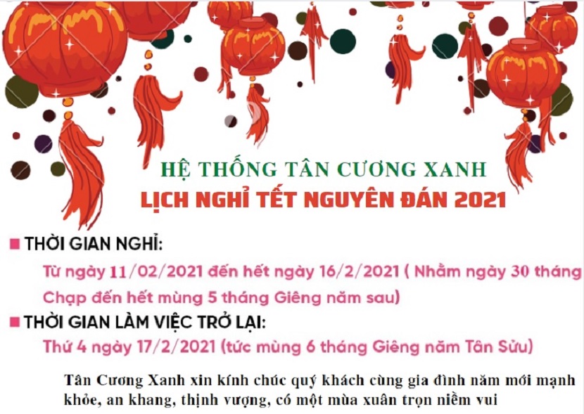 Tân Cương Xanh thông báo lịch nghỉ tết như sau :