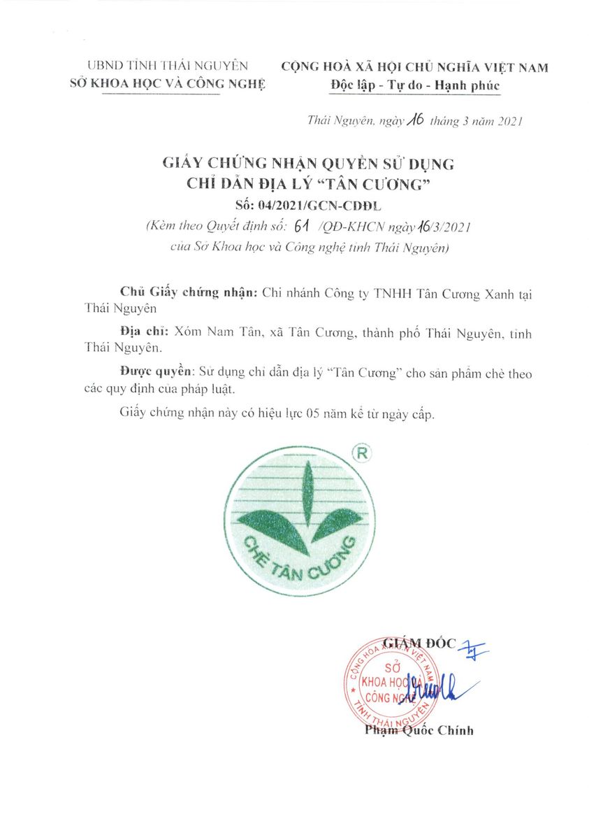 Hiện nay với nhu cầu mở rộng thị trường trong nước và sang Hoa Kỳ, Tân Cương Xanh gửi lời mời hợp tác tới các quý đại lý với những chính sách và dịch vụ tốt nhất. Tân Cương Xanh xin giới thiệu các giấy chứng nhận và hình ảnh nhà máy của công ty chúng tôi. Qúy khách có nhu cầu kinh doanh các sản phẩm trà thái nguyên nói chung, có thể liên hệ tới hotline Tân Cương Xanh để được tư vấn các chính sách hỗ trợ tốt nhất