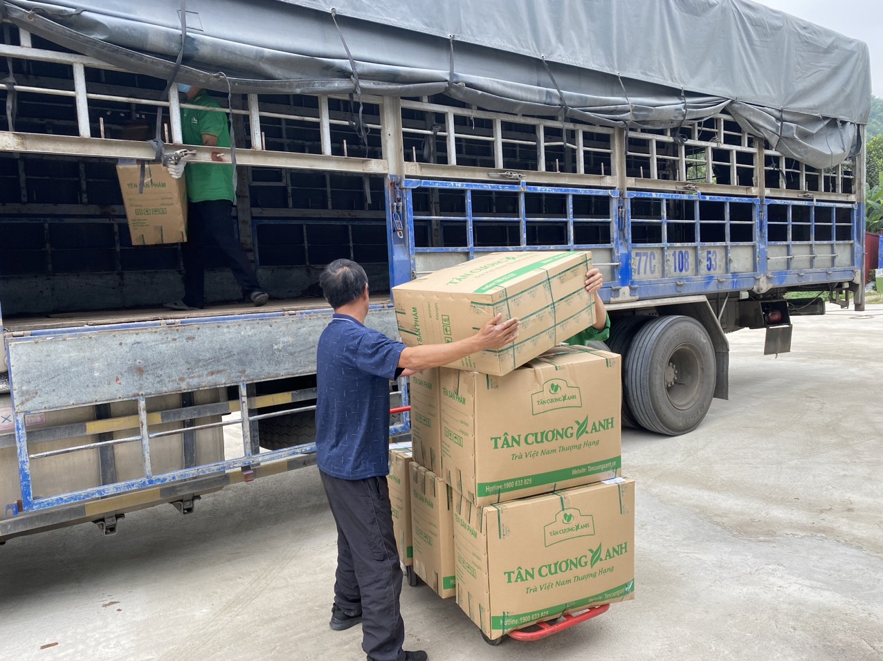 Hình ảnh bốc những thùng trà ngon tại nhà máy Tân Cương Xanh