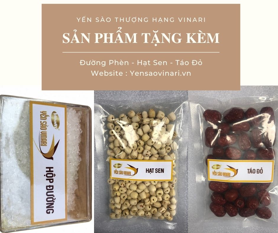 Sản phẩm tặng kèm gồm : Đường Phèn - Hạt Sen - Táo Đỏ
