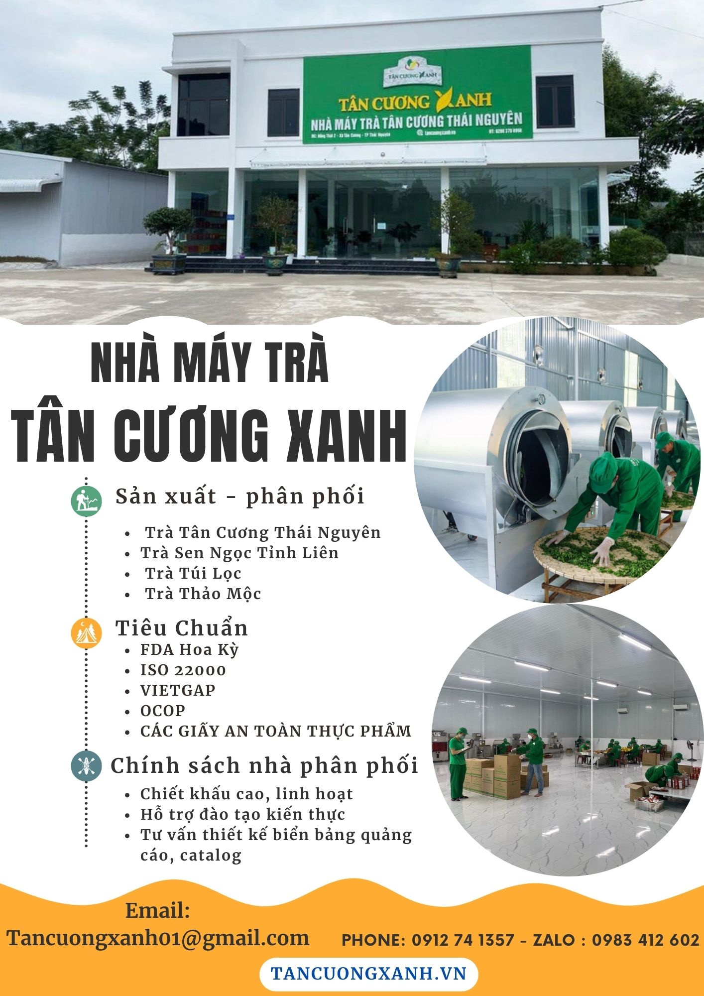 - Sản phẩm trà ngon, sạch, tiêu chuẩn FDA Hoa Kỳ, ISO, OCOP, Vietgap và các chứng nhận an toàn thực phẩm