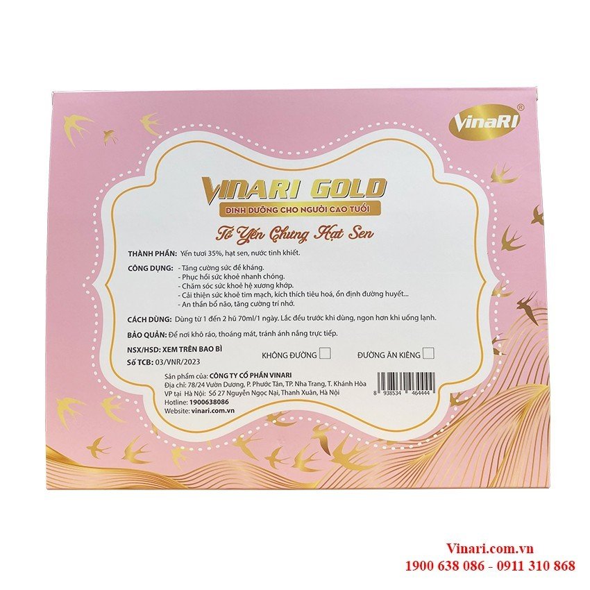 Hộp Yến Sào Chưng Sẵn Hạt Sen VinaRI Gold - Dinh Dưỡng Cho Người Cao Tuổi