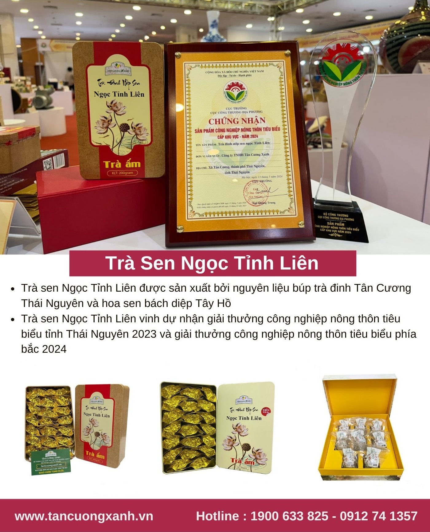 Trà sen Ngọc Tỉnh Liên là loại trà được ướp hương tự nhiên từ bông sen tươi, tạo nên hương vị thanh cao, quyến rũ. Sản phẩm này thích hợp làm quà biếu cho những ai yêu thích sự tinh tế và gắn kết văn hóa truyền thống.