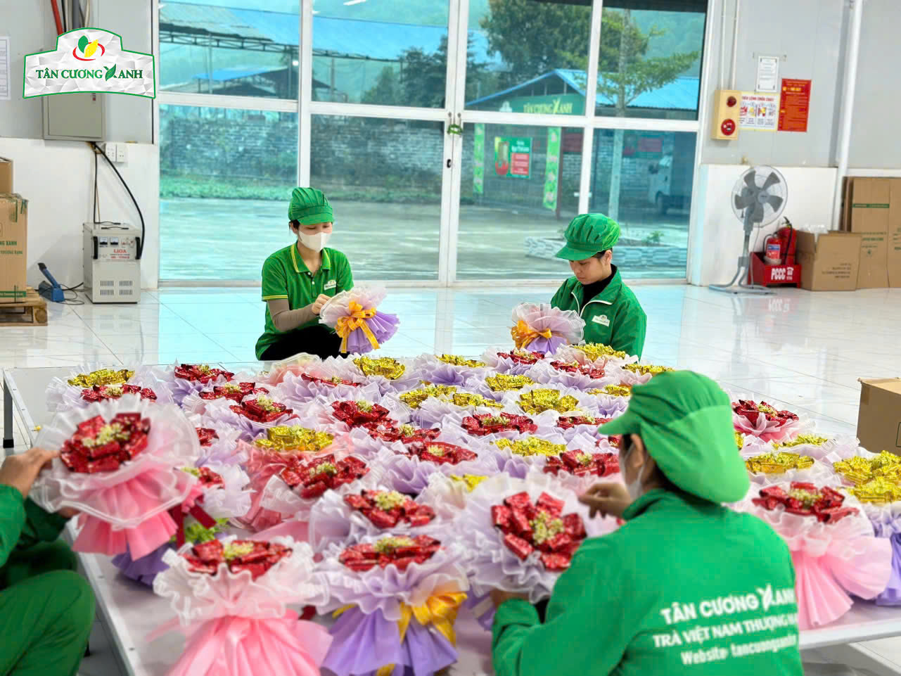 Các dịp đặc biệt như lễ Tết, ngày 8/3, 20/10, sinh nhật: Tân Cương Xanh triển khai chương trình tặng bó hoa trà cho khách hàng thân thiết.