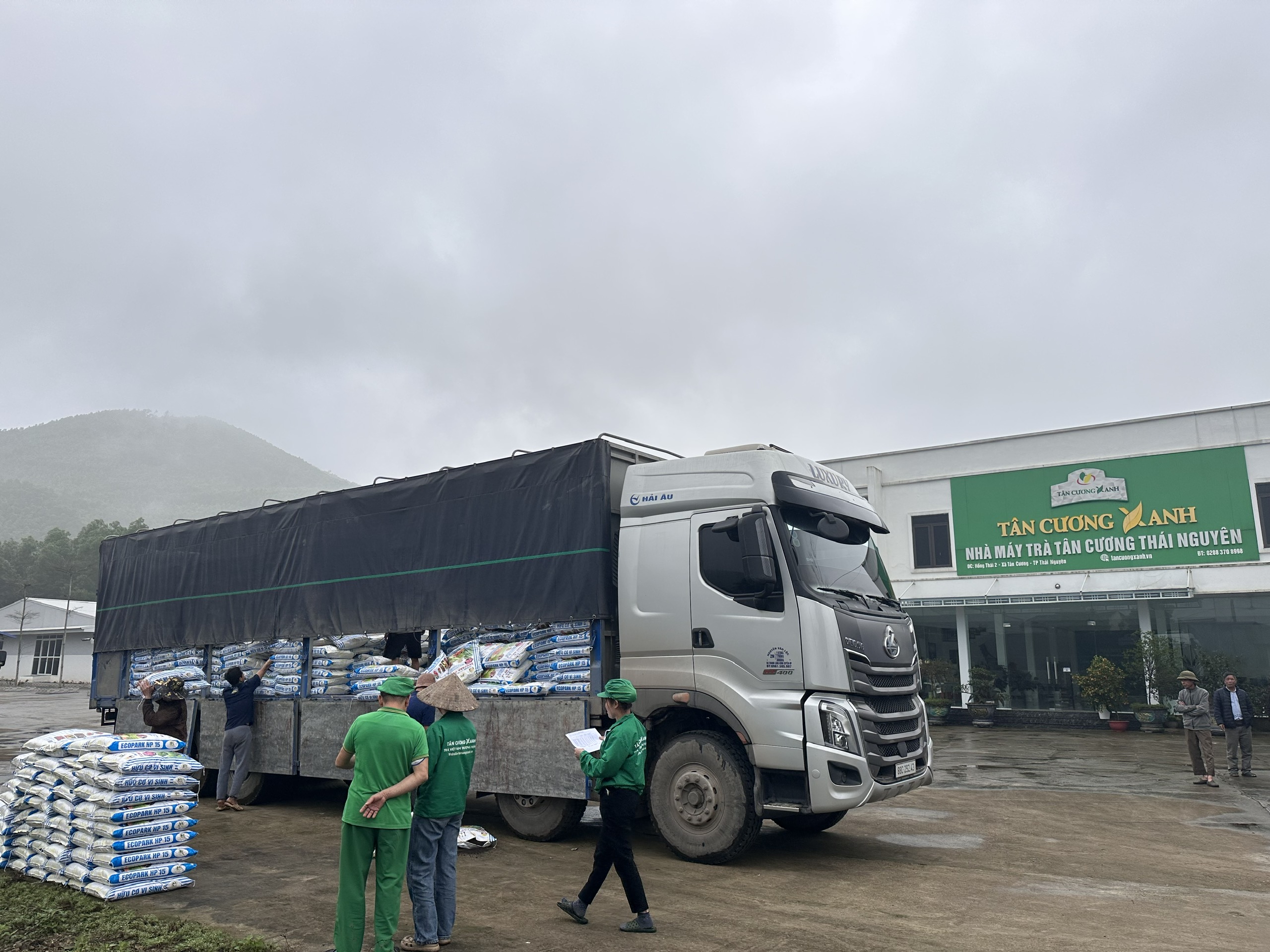 Những ngày này, tại nhà máy Tân Cương Xanh, hình ảnh những chuyến xe chở phân bón hữu cơ nối đuôi nhau về nhà máy đã trở thành khung cảnh quen thuộc. Đây không chỉ là hoạt động tiếp nhận nguyên liệu đơn thuần, mà còn là minh chứng rõ ràng cho cam kết về chất lượng và sự an toàn trong từng sản phẩm trà mà Tân Cương Xanh mang đến cho người tiêu dùng. Ngay sau khi phân bón hữu cơ được đưa về nhà máy, đội ngũ cán bộ Tân Cương Xanh nhanh chóng thực hiện quy trình kiểm tra chất lượng và tiến hành phân phát cho các thành viên quản lý vườn trà hữu cơ. Việc này đảm bảo phân bón được sử dụng đúng thời điểm, đúng quy trình, góp phần quan trọng trong việc nuôi dưỡng những đồi chè xanh mướt, thơm ngon, và hoàn toàn sạch.
