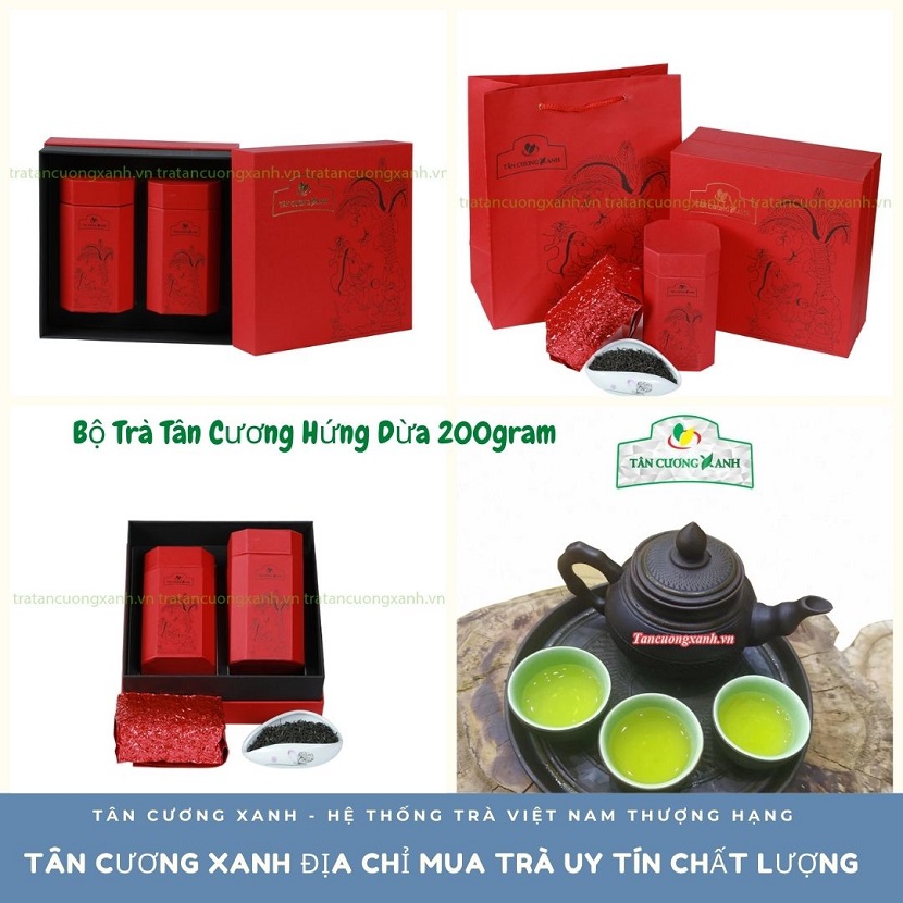 Trà được sử dụng là các búp trà thái nguyên ngon nhất, đảm bảo tiêu chuẩn nước xanh, thơm, ngọt hậu. Với giá bán rất phải chăng là 250 000 vnđ/1 hộp và tặng kèm túi giấy xách ngoài sang trọng thì Hộp Trà Tân Cương Hứng Dừa chính là sản phẩm được nhiều quý khách hàng lựa chọn nhất