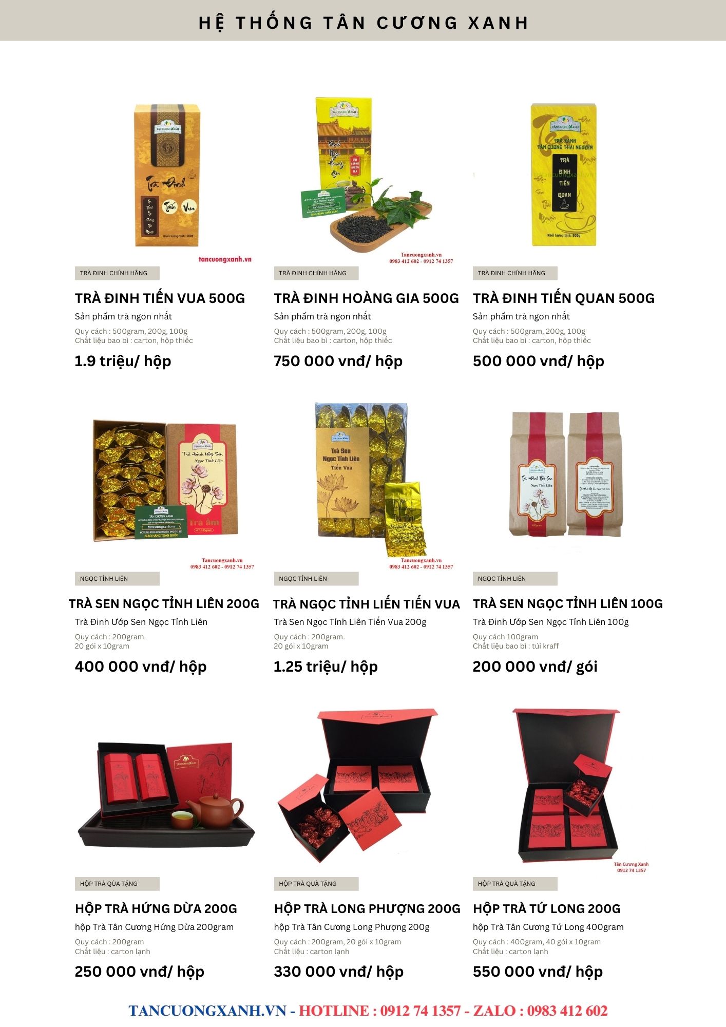Các sản phẩm chè thái nguyên Tân Cương Xanh không chỉ phục vụ nhu cầu uống hàng ngày mà còn được nâng cấp lên thành những hộp chè quà biếu sang trọng và ý nghĩa. Tân Cương Xanh đã sáng tạo để tạo những hộp quà tặng chè thái nguyên với thiết kế cao cấp mang đậm tính dân tộc và sự hiện đại như hộp chè hứng dừa, hộp chè Long phượng… đến các hộp Gỗ thông, hộp Đinh ngọc, hộp trà đinh Tiến vua… Những hộp chè quà tặng này mang đủ đầy hương- sắc- vị- thần của vị chè thái nguyên ngon chính gốc mang đến những món quà tặng dành cho quý khách hàng những sự lựa chọn ưng ý và hoàn hảo nhất.