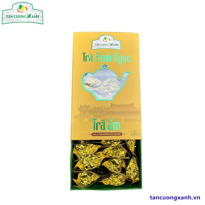Trà đinh ngọc chắc chắn là loại trà đắt đỏ và hảo hạng bậc nhất trên thị trường. Trà được làm từ những búp trà non nhất. Lá trà phải hái tỉ mỉ bằng tay vào buổi sáng sớm, tránh để trà bị dập, nát. Sau đó, trà được chế biến theo phương pháp truyền thống để tạo ra những cánh trà nhỏ, xoăn, có màu xanh đậm và hương thơm đặc trưng.