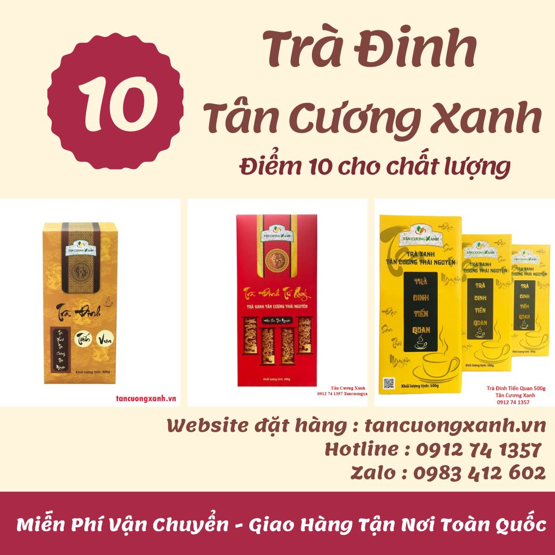 Tân Cương Xanh là một trong những thương hiệu nổi bật, có vùng chè sạch Tân Cương – Thái Nguyên, trực tiếp sản xuất và phân phối trà đinh thượng phẩm đến tay người tiêu dùng. Với hơn 15 năm kinh nghiệm, quy trình kiểm soát chất lượng nghiêm ngặt, cùng với các dòng hộp quà cao cấp, Tân Cương Xanh đã trở thành địa chỉ tin cậy của hàng ngàn khách hàng yêu trà và doanh nghiệp trên toàn quốc.