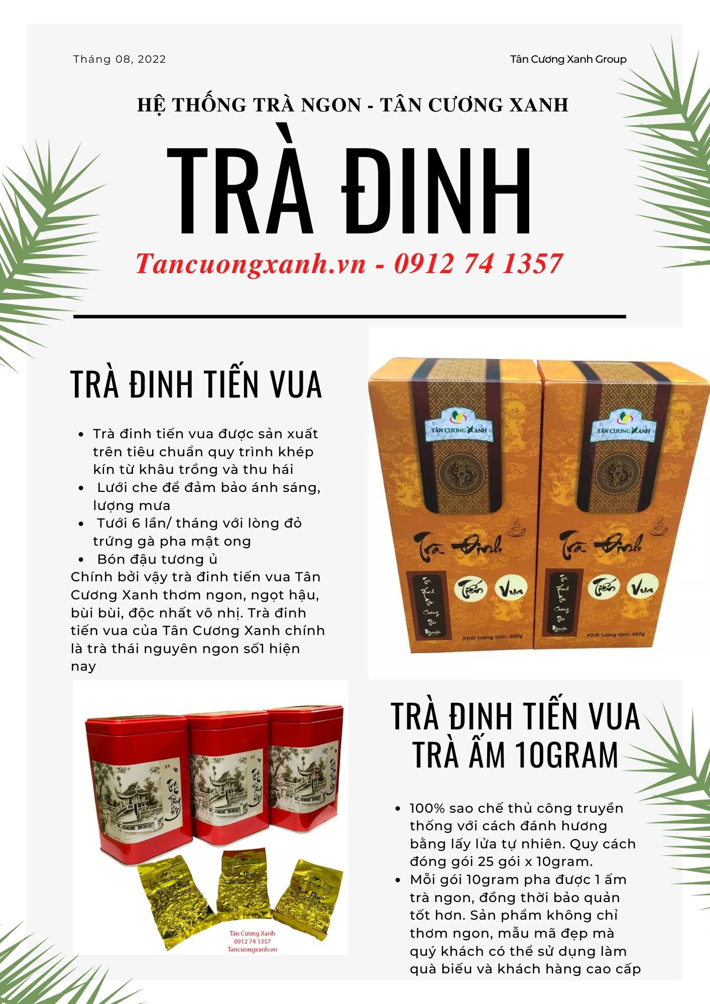 Trà Đinh Thượng Phẩm Tân Cương Xanh không chỉ là tinh hoa của vùng đất Tân Cương mà còn là niềm tự hào của văn hóa trà thái nguyên. Hương vị thanh tao, quy trình chế biến tỉ mỉ và những lợi ích sức khỏe tuyệt vời đã giúp Trà Đinh giữ vững vị thế là một trong những loại trà ngon nhất Việt Nam. Nếu bạn là người yêu trà, chắc chắn Trà Đinh sẽ là một trải nghiệm đáng giá để thưởng thức và khám phá!
