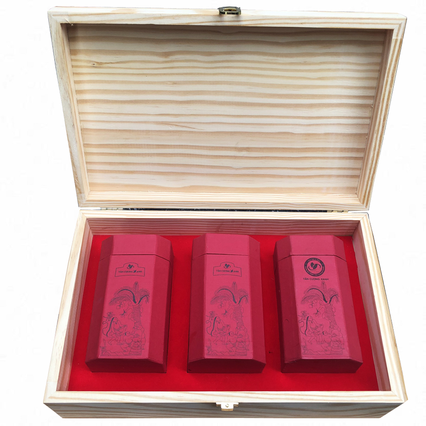 Tân Cương Xanh xin trân trọng giới thiệu dòng sản phẩm hộp trà ô long quà biếu gỗ thông. Hộp được làm bằng chất liệu gỗ thông trắng Đà Lạt, bên trong hộp là nguyên liệu búp trà ô long tứ quý ngon nhất được tuyển chọn. Đi kèm với hộp là túi vải dệt, đây là sản phẩm hộp trà ô long quà biếu cao cấp. Tân Cương Xanh hy vọng với sản phẩm đẹp và ý nghĩa này sẽ làm tăng thêm sự đa dạng lựa chọn quà biếu của quý khách