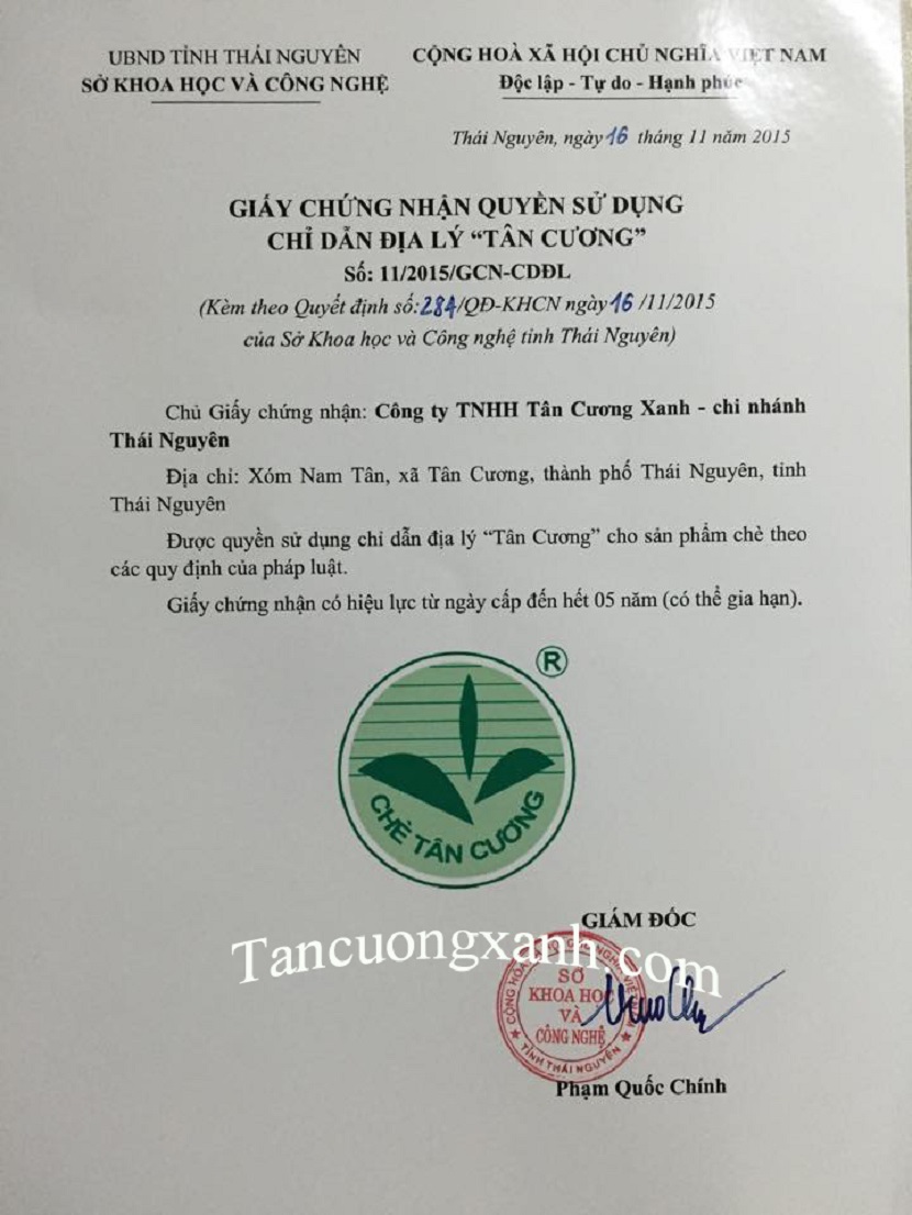 Với bất kì công ty , cơ sở nào muốn kinh doanh trà tân cương thái nguyên phải được sự chấp thuận của Sở Công Nghệ Tỉnh Thái Nguyên