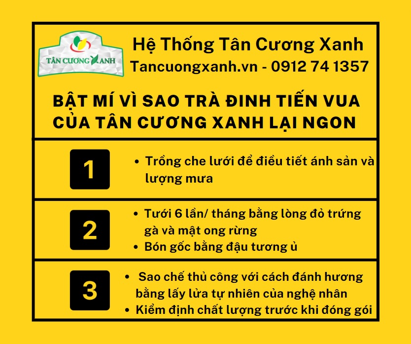Ngoài ra Tân Cương Xanh còn có dòng sản phẩm trà đinh tiến vua thượng hạng, với giá bán lên tới 5.5 triệu/1kg