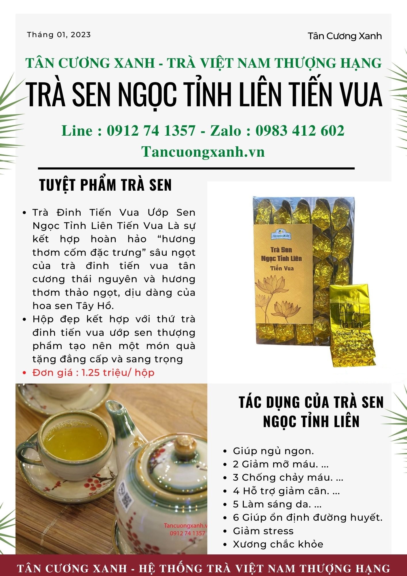 Được đánh giá như một loại trà “quốc ẩm”, trà ướp hoa sen nhất là trà sen hồ Tây trở thành một thứ thức uống cầu kì nhưng lại hết sức giản dị và thuần khiết của dân ta. Trà sen hồ Tây là sự hòa quyện hoàn hảo giữa vị ngon của trà thái nguyên với mùi thơm nhẹ nhàng tinh khiết của hoa sen. Sen bách diệp ở các đầm lầy quanh hồ Tây xưa nay được xem là loài sen quý với hương thơm đặc trưng mà không nơi nào có được. Những bông sen bách diệp được kỳ công chọn kết hợp với những cánh trà thái nguyên trải qua một quá trình chế biến kỹ càng và tỉ mẫn để biến hoa và trà thành “tri kỉ” và là một thượng phẩm: trà sen hồ Tây Ngọc Tỉnh Liên.