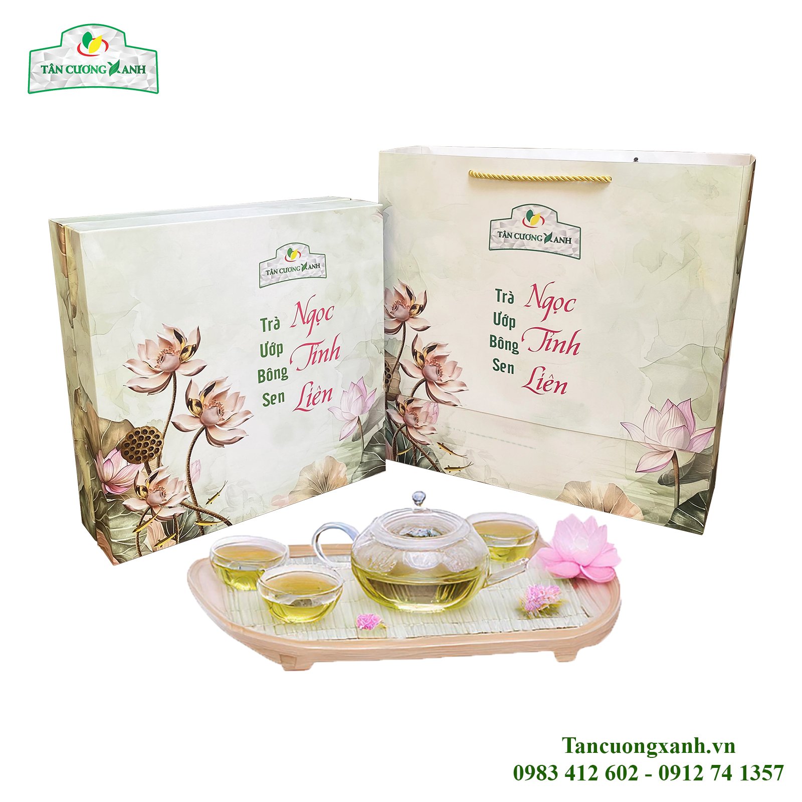 Tân Cương Xanh trân trọng giới thiệu Hộp Trà Ướp Bông Sen Ngọc Tỉnh Liên – món quà biếu sang trọng, kết tinh từ nghệ thuật trà Việt cổ truyền và vẻ đẹp thanh khiết của thiên nhiên.