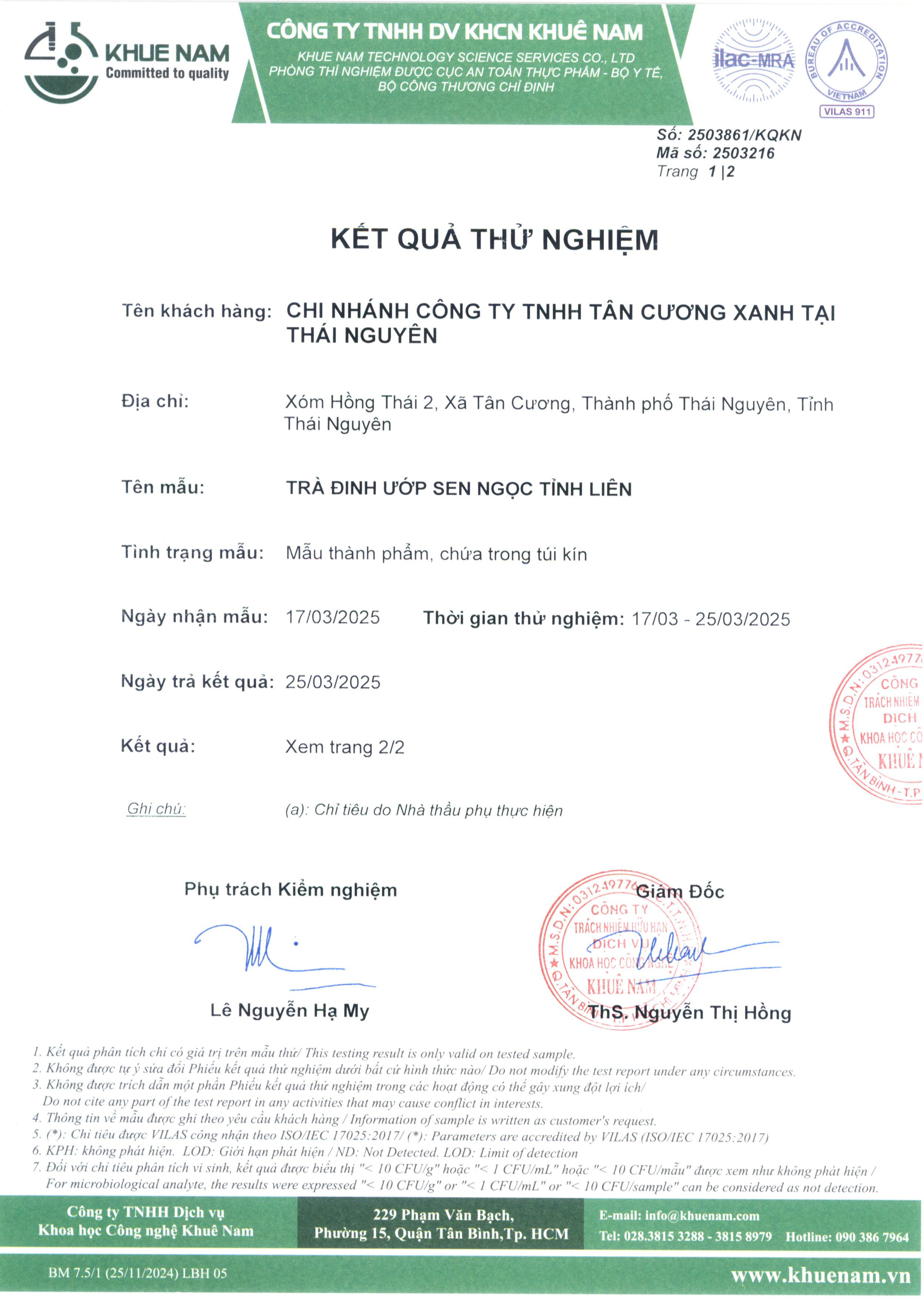 Ngày xét nghiệm: 17–25/03/2025