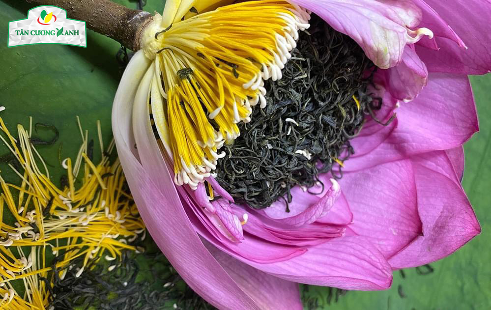 Trà ướp bông sen Ngọc Tỉnh Liên được chế biến thông qua một quy trình cầu kỳ và tỉ mỉ. Đầu tiên, trà Tân Cương Thái Nguyên – loại trà có tiếng về chất lượng – được lựa chọn kỹ càng để đảm bảo đạt chuẩn vị và hương thơm. Sau đó, trà được ướp cùng với những bông sen tươi mới, hái từ những đầm sen vào thời điểm sáng sớm, khi hương sen nồng nàn nhất.