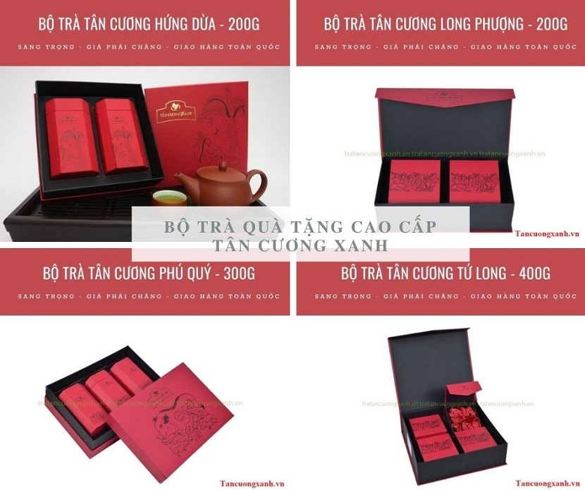 Với các hộp trà quà tặng như Hộp Tứ Long, Long Phượng, Hứng Dừa...sẽ là cầu nối trao gửi những yêu thương của mọi người đến với nhau khi đào nở, mai khoe sắc Tết đến xuân về. Với sự nghiên cứu không ngừng, Tân Cương Xanh cung cấp tới thị trường những sản phẩm chè thái nguyên cùng các hộp quà biếu đặc sắc, độc đáo và ý nghĩa tự hào là nhà cung cấp quà tết uy tín, chất lượng cũng như dịch vụ tặng quà chuyên nghiệp nhất hiện nay trên toàn quốc.