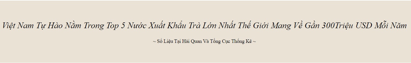 Việt Nam ta đứng trong top5 các nước xuất khẩu trà mạnh nhất thế giới , khoảng 300 triệu USD năm 2018 , nhưng trong đó trà đen chiếm tới 60% tổng lượng xuất khẩu , sau đó là trà xanh và các loại trà khác