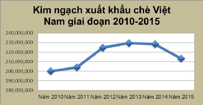 Trong 5 tháng đầu năm 2012, Việt Nam đã xuất khẩu 49.000 tấn chè, với kim ngạch 69 triệu USD, tăng 17,2% về lượng và tăng 14,8% về trị giá so với cùng kỳ năm ngoái