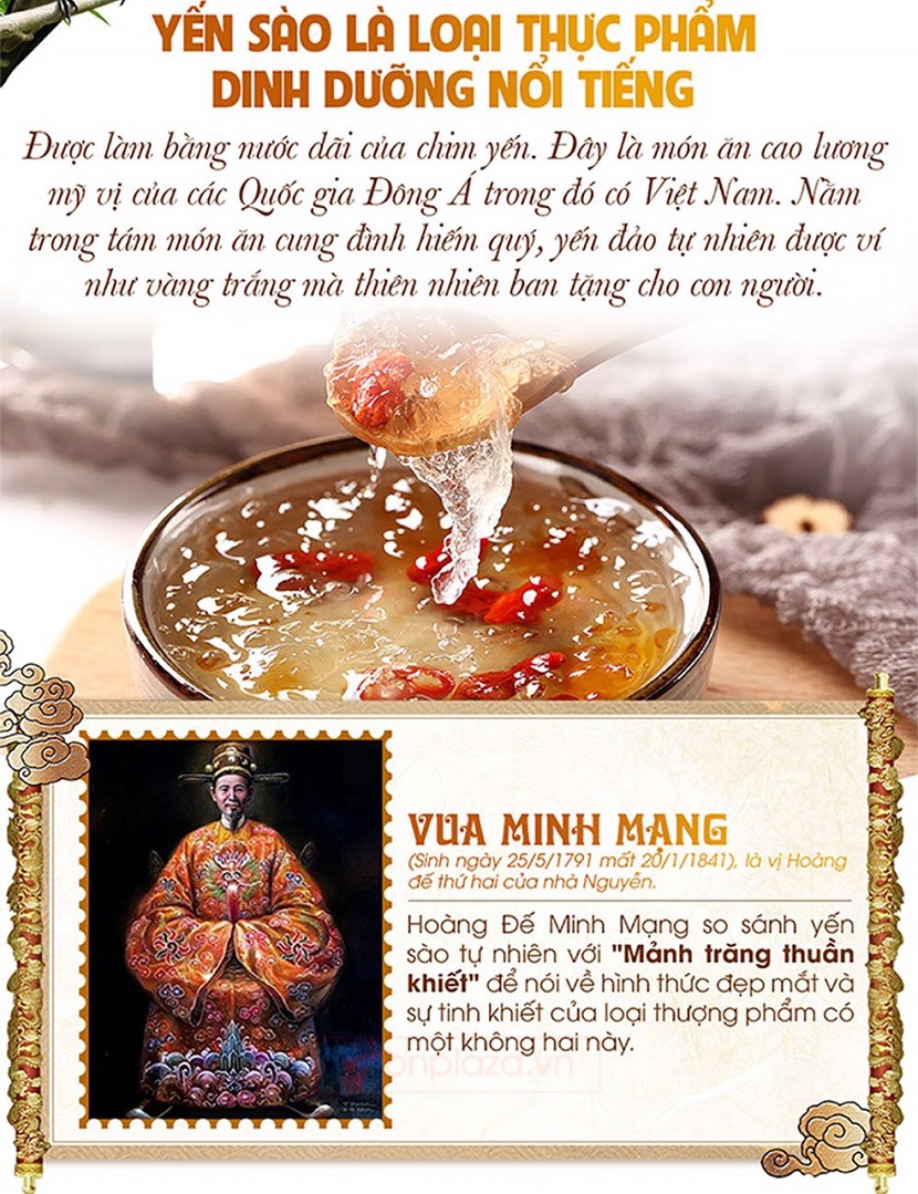 Yến sào hay tổ yến luôn là một món ăn đắt giá mà chỉ bậc đế vương vua chúa mới được thưởng thức. Tuy nhiên, hiện nay yến sào đã trở nên phổ biến rộng rãi hơn với các loại tổ yến nhà, chế phẩm từ tổ yến, nhưng yến sào tự nhiên nhất là Tổ yến Khánh Hòa luôn là sự lựa chọn hàng đầu và có giá trị cao cả về dinh dưỡng cũng như giá cả