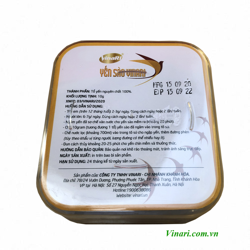 Mô tả : Tổ yến trắng tinh chế TC2 được sản xuất tại nhà máy yến sào VinaRI. Các tổ yến có sợi yến to, dày và chắc. Sau khi ngâm và chưng lên Yến sẽ rất nở nhưng vẫn giữ được sợi. Khi ăn cho cảm giác dai ngon và sợi rất chắc. Sau khi chưng có thể để tủ mát đên 7 ngày dùng vẫn chất lượng